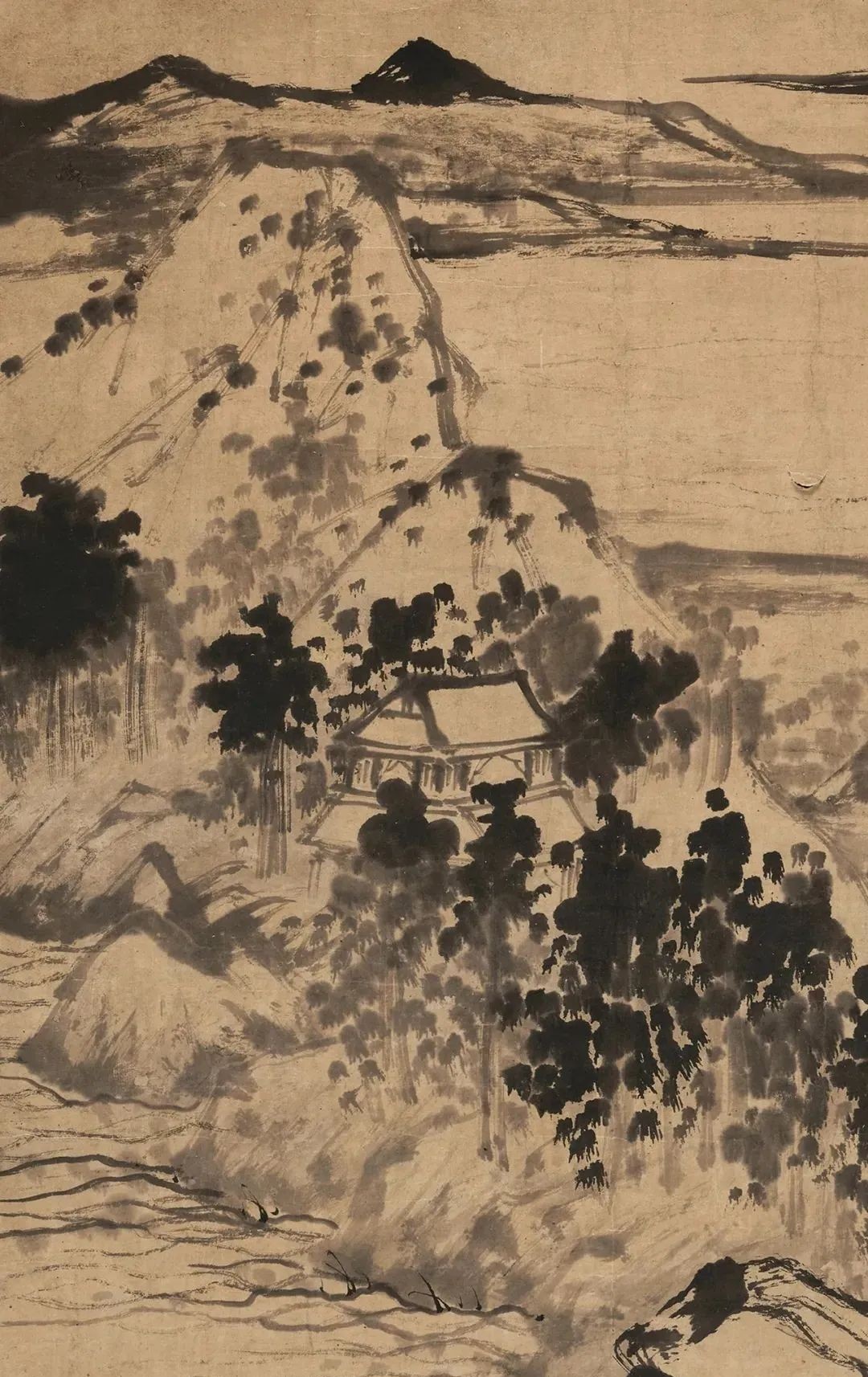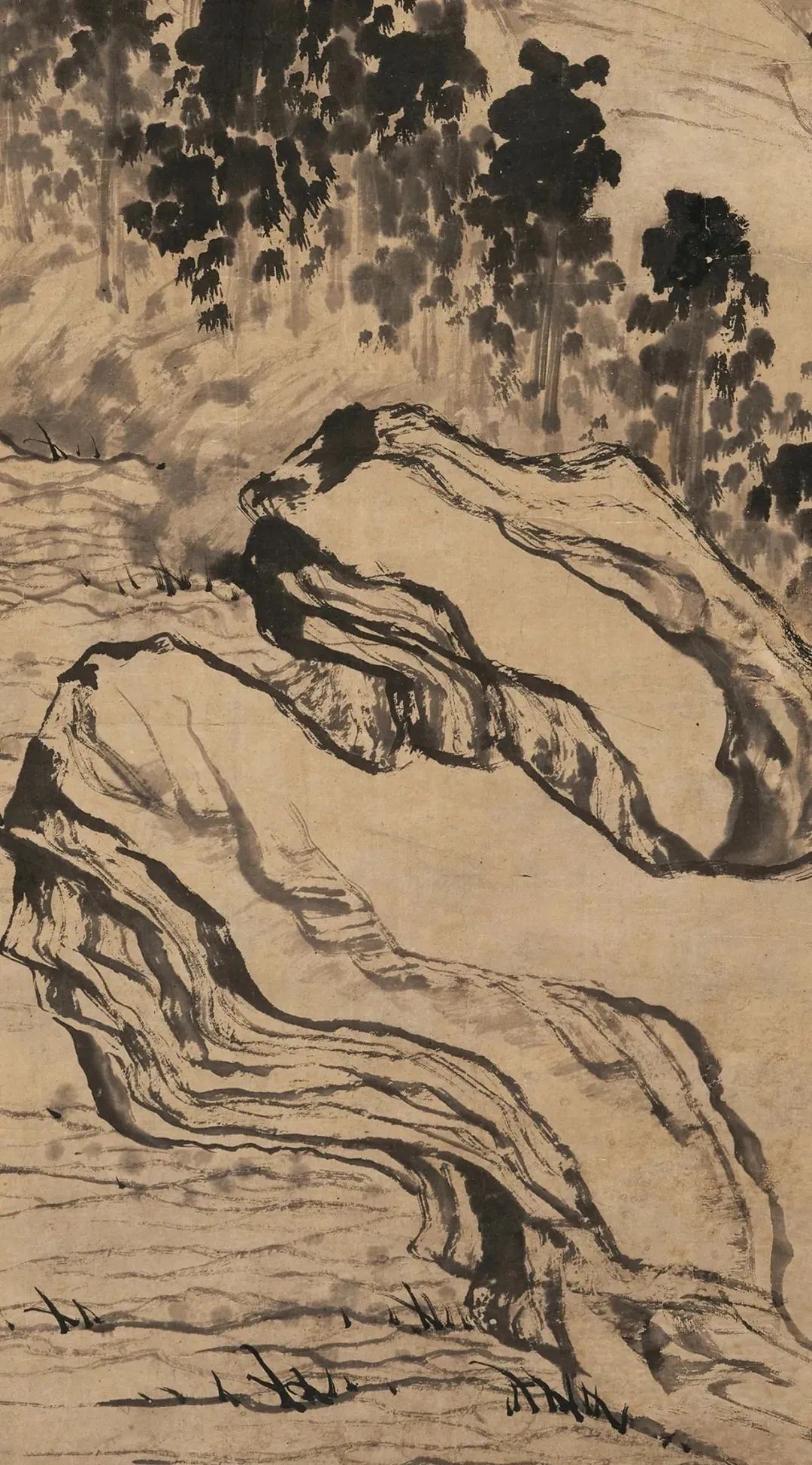 石涛的山水画构图善于变化,不拘一格。在这幅画中,他巧妙地运用远近、高低、虚实的对比,营造出一种深邃而富有层次感的画面效果。