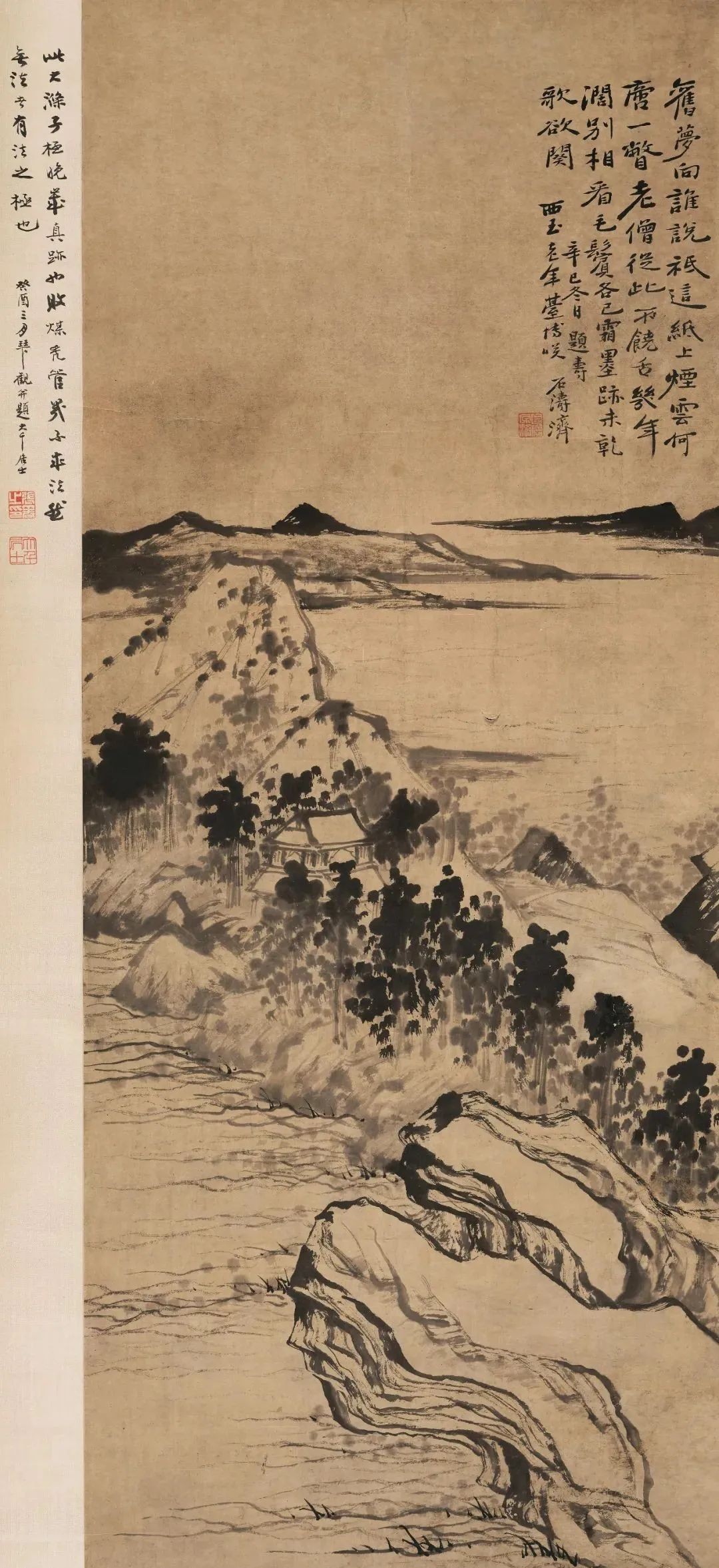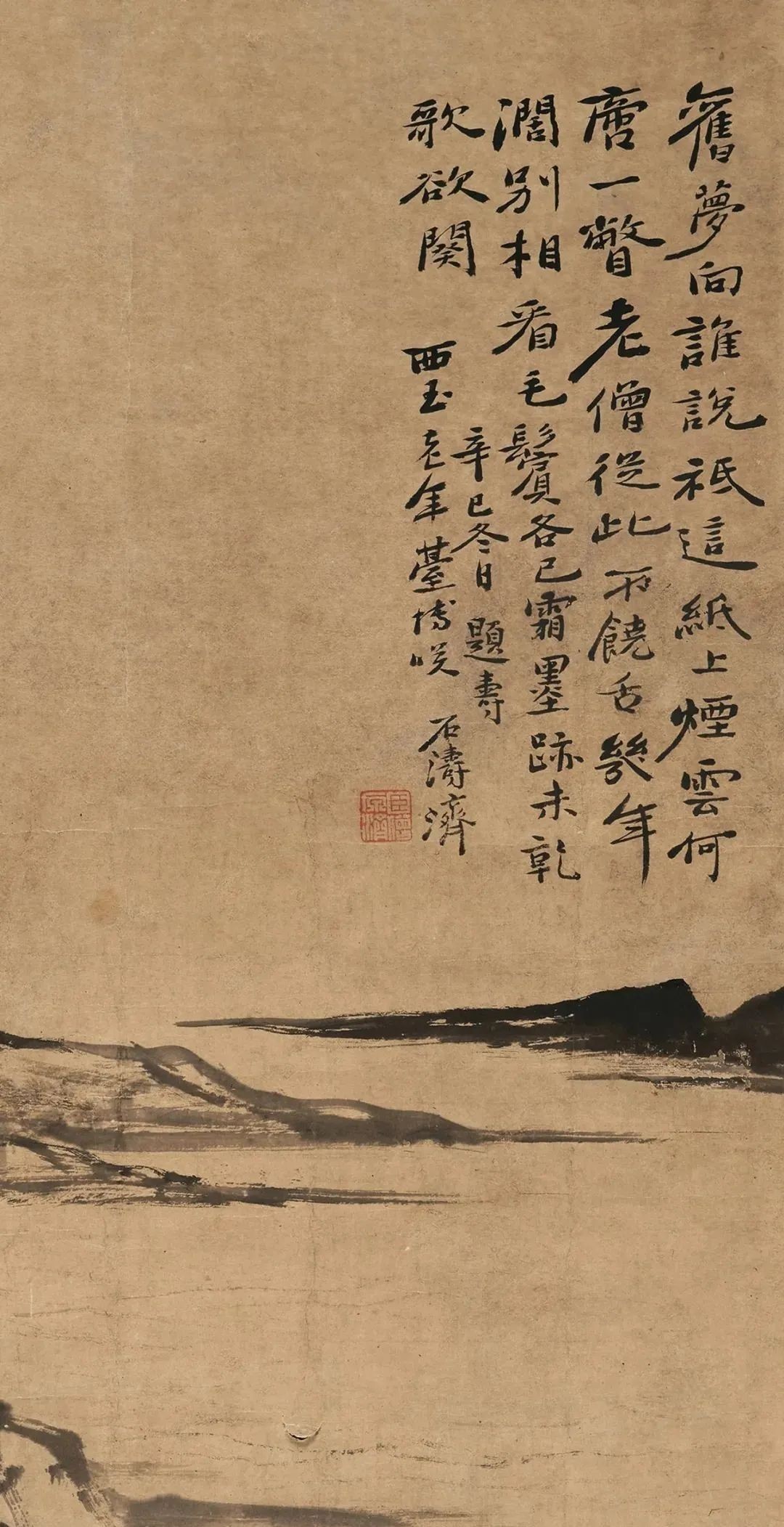 在作品的题识中,石涛写道:“旧梦向谁说,只这纸上烟云,何啻一瞥,老僧从此不饶舌。几年阔别相看,毛鬓各已霜,墨迹未干歌欲阕。”这些诗句透露出石涛在创作此画时的心境,以及对过往岁月的感慨。而画上的钤印“臣僧原济”,则进一步证实了这幅画是石涛的真迹。